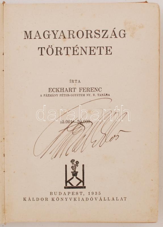 Eckhart Ferenc: Magyarország története. Bp., 1935, Káldor Könyvkiadóvá... https://www.darabanth.com/de/227-Fernauktion/227.0/Andere-Sammelgebiete/Bucher-Geschichte~200315/Eckhart-Ferenc-Magyarorszag-tortenete-Bp-1935-Kaldor-Konyvkiadovallalat-Kopott-vaszonk~II1012612