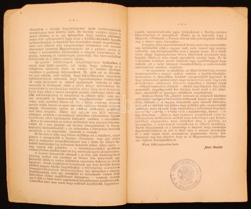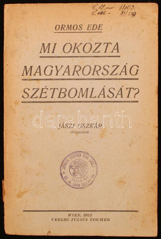 Ormos Ede: Mi okozta Magyarország szétbomlását? Jászi Oszkár előszaváv... https://www.darabanth.com/de/227-Fernauktion/227.0/Andere-Sammelgebiete/Bucher-Geschichte~200315/Ormos-Ede-Mi-okozta-Magyarorszag-szetbomlasat-Jaszi-Oszkar-eloszavaval-Wien-1921-Julius~II1009747