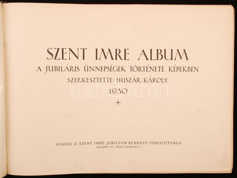 Bp. 1930, Szent Imre Jubileum Rendező Főbizottsága. 160 p. (fényképek). Kiadói, aranyozott, dombornyomású vászonkötésben. (egy két gyűrött lappal)