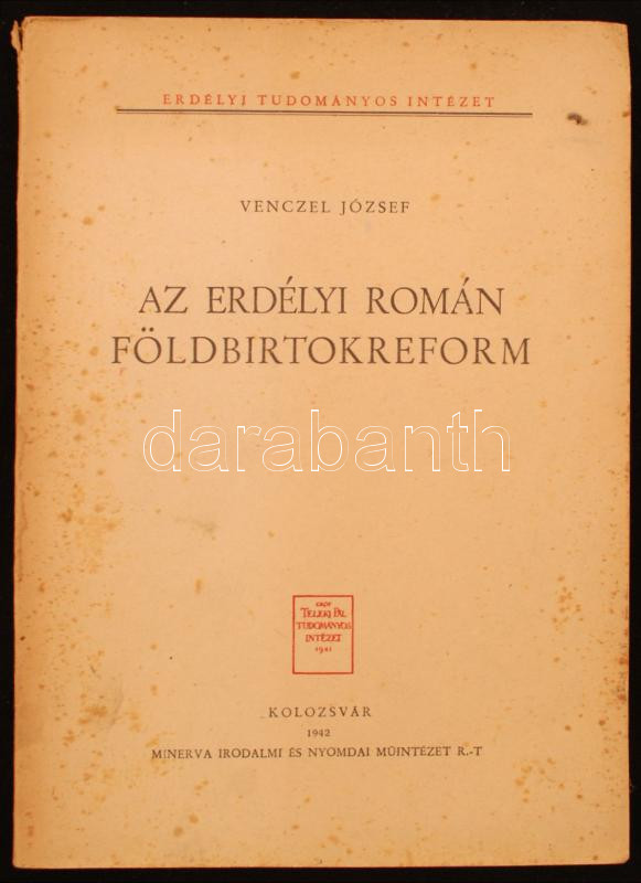Venczel József: Az erdélyi román földbirtokreform. Kolozsvár, 1942, Mi... https://www.darabanth.com/de/227-Fernauktion/227.0/Andere-Sammelgebiete/Bucher-Geschichte~200315/Venczel-Jozsef-Az-erdelyi-roman-foldbirtokreform-Kolozsvar-1942-Minerva-Kiadoi-papir-ko~II1009791
