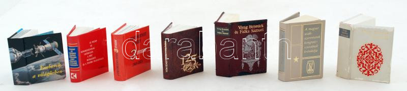 7 db minikönyv: A nyomda-, a papíripar, a sajtó és a könyvkiadás dolgozóinak szakszervezete történeti kronológiája. Bp., 1987; A Párttörténeti Intézet 3 évtizede 1948-1978; Emberek a világűrben; A magyar szakszervezetek kongresszusainak krónikája; Az MSZMP XII. kongresszusának határozata a párt munkájáról és a további feladatokról. Kiadói kartonált és műbőr kötés, jó állapotban.; Virág Benedek és Falka Sámuel; Nagy Sándor dolgairól. Kiadói műbőr kötés, jó állapotban.