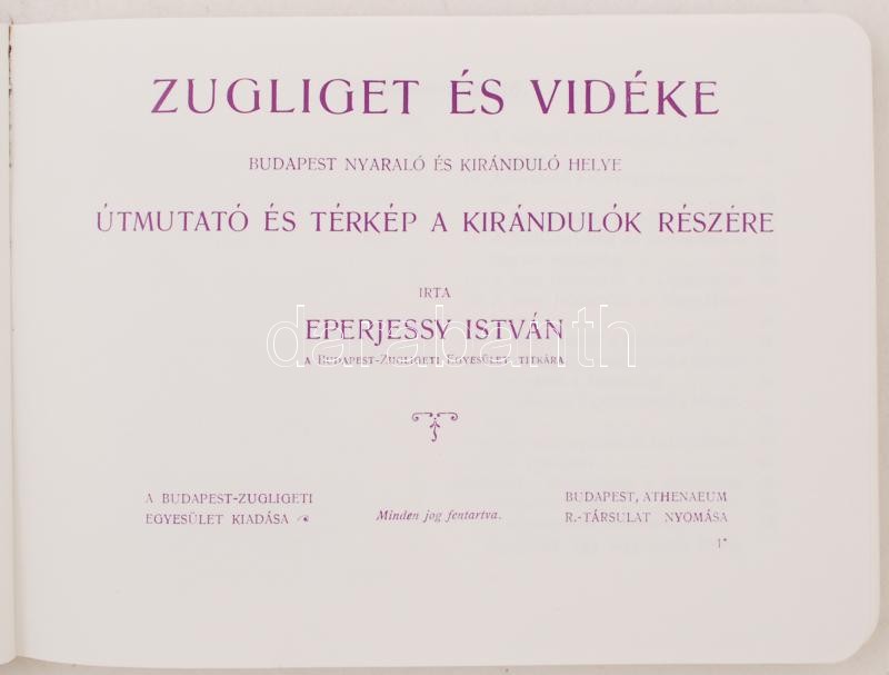 Eperjessy István: Zugliget és vidéke. Budapest nyaraló és kiránduló helye. Útmutató és térkép a kirándulók részére. Bp., 1991, Athenaeum. Az 1906-os kiadás reprintje, térképmelléklettel. Papírkötésben, jó állapotban.