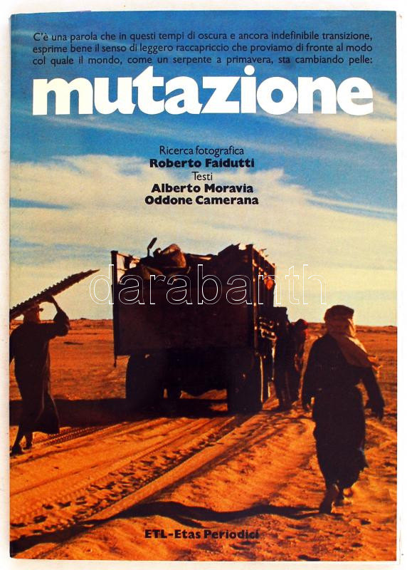 Faidutti Robert: Mutazione. 1978, ETL - Etas Periodici. Nagy méretű, színes életképek az afrikai Szaharából. Olasz nyelvű kiadvány. Kiadói, illusztrált fedőborítóval, a gerinc elvált, egyébként jó állapotban.
