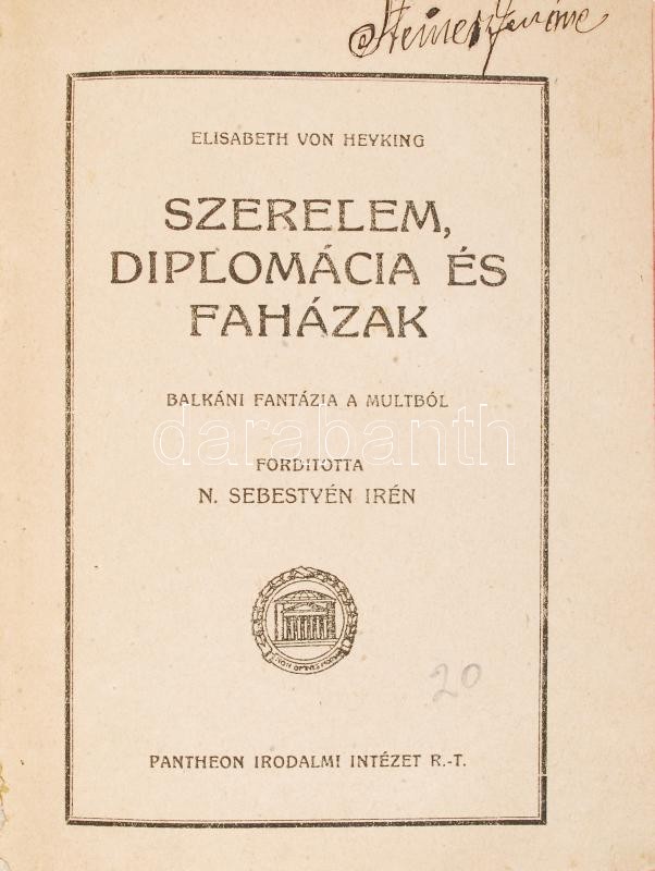2 db könyv- Elisabeth von Hevking: Szerelem, diplomácia és faházak. Balkáni fantázia a múltból. Bp., Pantheon. Kiadói félvászon kötés, jó állapotban; Dante: A purgatórium. Kiadói félvászon kötés, kissé kopottas állapotban, belső címlap hiányzik.