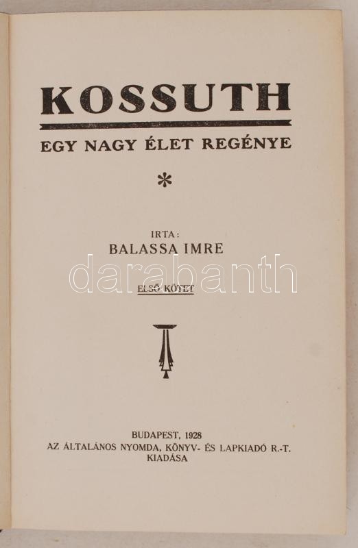Balassa Imre: Kossuth egy nagy élet regénye. I-II. kötet. Jeney Ernő rajzaival. Budapest, 1928, Általános Nyomda, Könyv - és Lapkiadó. Kiadói egészvászon kötésben, jó állapotban.