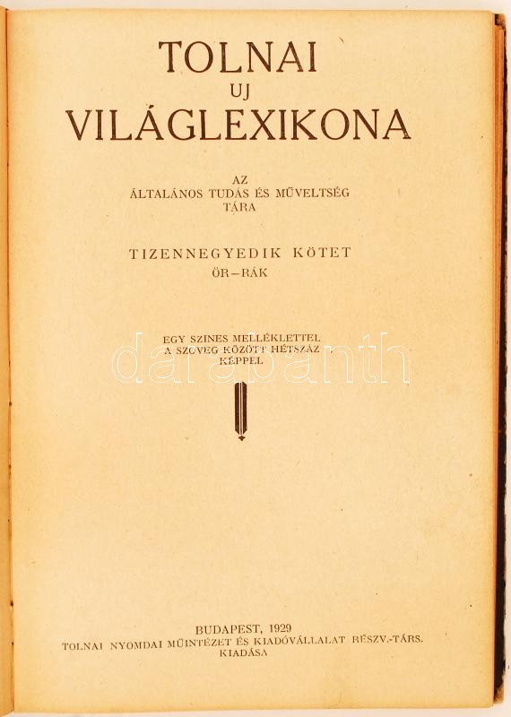 Tolnai Világlexikon IX-XVIII. 10 kötet, Budapest, 1927-30, Tolnai Nyo... https://www.darabanth.com/de/227-Fernauktion/227.0/Andere-Sammelgebiete/Bucher-Sonstige-Raritaten~200334/Tolnai-Vilaglexikon-IX-XVIII-10-kotet--Budapest-1927-30-Tolnai-Nyomdai-Muveszet-es-KiadovC3~II967817