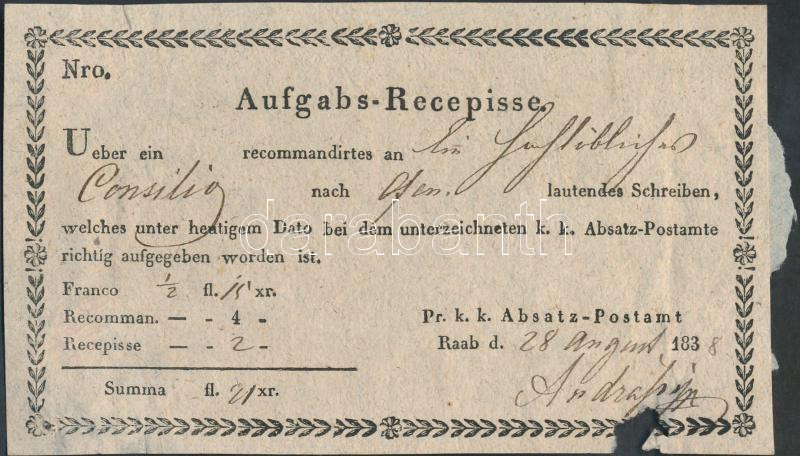 1838-1867 RAAB Győr 21db magyar és német nyelvű feladóvevény, némelyik... https://www.darabanth.com/de/227-Fernauktion/227.0/Andere-Sammelgebiete/Dokument~200340/1838-1867-RAAB-Gyor-21db-magyar-es-nemet-nyelvu-feladoveveny-nemelyiken-szaraz-pecset-ko~II1007422