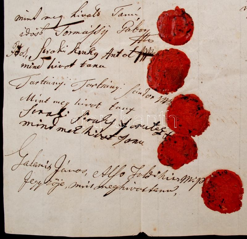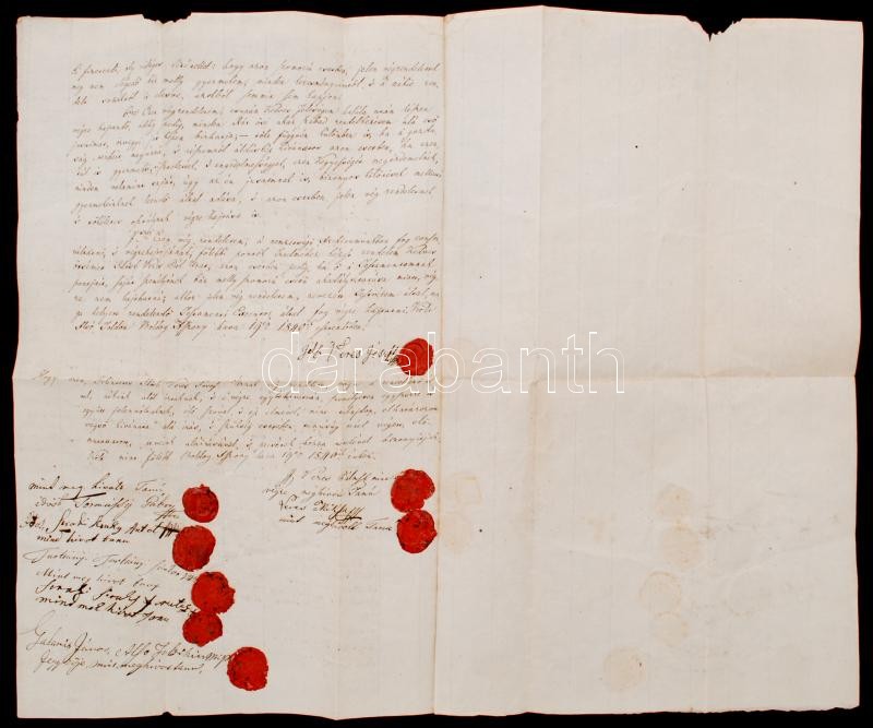 1840 Magyar nyelven íródott végrendelet, a végrendelkező és a tanúk rá... https://www.darabanth.com/de/227-Fernauktion/227.0/Andere-Sammelgebiete/Dokument~200340/1840-Magyar-nyelven-irodott-vegrendelet-a-vegrendelkezo-es-a-tanuk-ranyomott-viaszpecsetje~II1010879