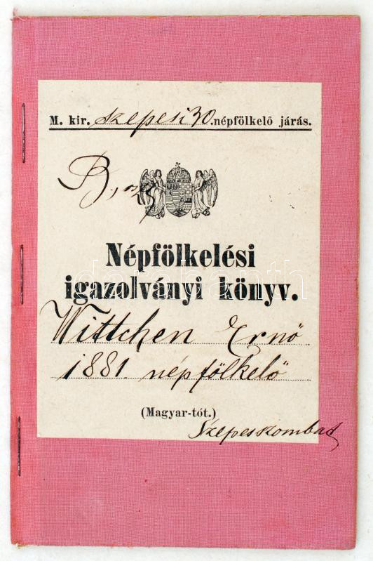 1881 Népfölkelési igazolvány könyv Wittchen Ernő népfölkekő részére. S... https://www.darabanth.com/de/227-Fernauktion/227.0/Andere-Sammelgebiete/Dokument~200340/1881-Nepfolkelesi-igazolvany-konyv-Wittchen-Erno-nepfolkeko-reszere-Szepesszombat~II1005924