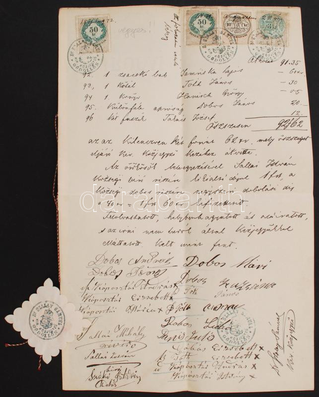 1891 Okmány vegyes okmánybélyeg felhasználással https://www.darabanth.com/de/227-Fernauktion/227.0/Andere-Sammelgebiete/Dokument~200340/1891-Okmany-vegyes-okmanybelyeg-felhasznalassal~II1011985