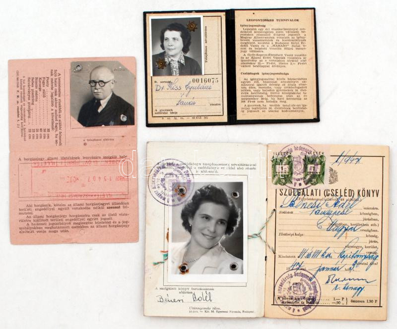 Vegyes, fényképes okmány tétel, 3 db, : Állami Horgászjegy MOHOSZ(1953), MÁV arcképes ig. közszolgálati alkalmazottak és családtagjaik részére (1970), Szolgálat (cseléd) könyv (1947)