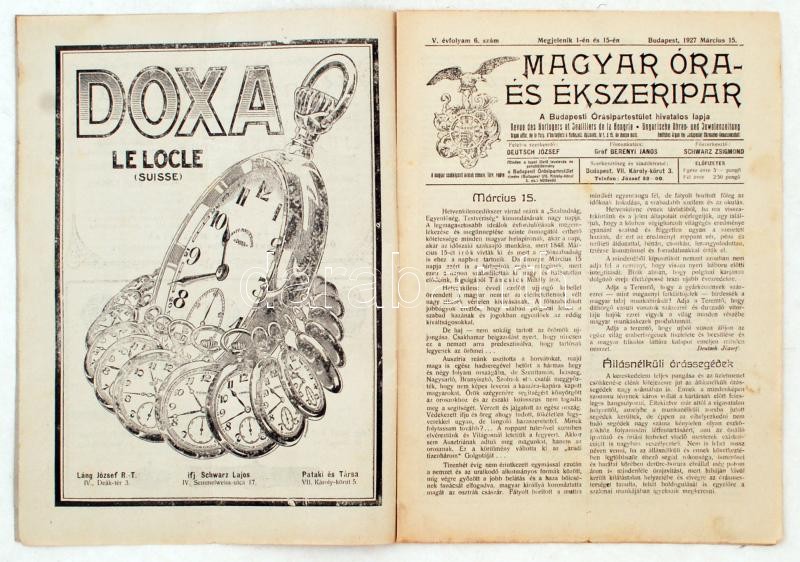 1927 Magyar Óra- és Ékszeripar, a Budapesti Órásipartestület hivatalos... https://www.darabanth.com/de/227-Fernauktion/227.0/Andere-Sammelgebiete/Drucksachen~200312/1927-Magyar-Ora-es-Ekszeripar-a-Budapesti-Orasipartestulet-hivatalos-lapja-V-evf-6szam~II1005916