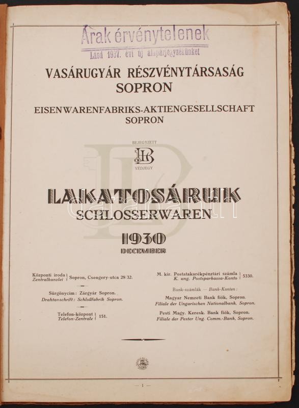 1930-1934 2 db katalógus: Lakatosáruk. Schlosserwaren 1930. Vasárugyár... https://www.darabanth.com/de/227-Fernauktion/227.0/Andere-Sammelgebiete/Drucksachen~200312/1930-1934-2-db-katalogus-Lakatosaruk-Schlosserwaren-1930-Vasarugyar-Rt-Sopron-Lagyonte~II1012812