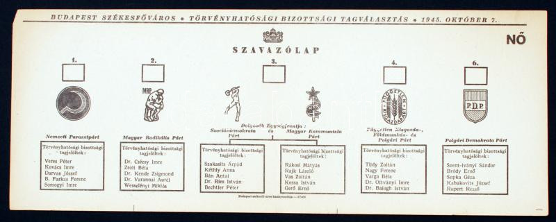 1945 Bp., törvényhatósági bizottsági tagválasztás (okt. 7.), kitöltetl... https://www.darabanth.com/de/227-Fernauktion/227.0/Andere-Sammelgebiete/Drucksachen~200312/1945-Bp-torvenyhatosagi-bizottsagi-tagvalasztas-okt-7-kitoltetlen-noi-szavazolap~II1010204