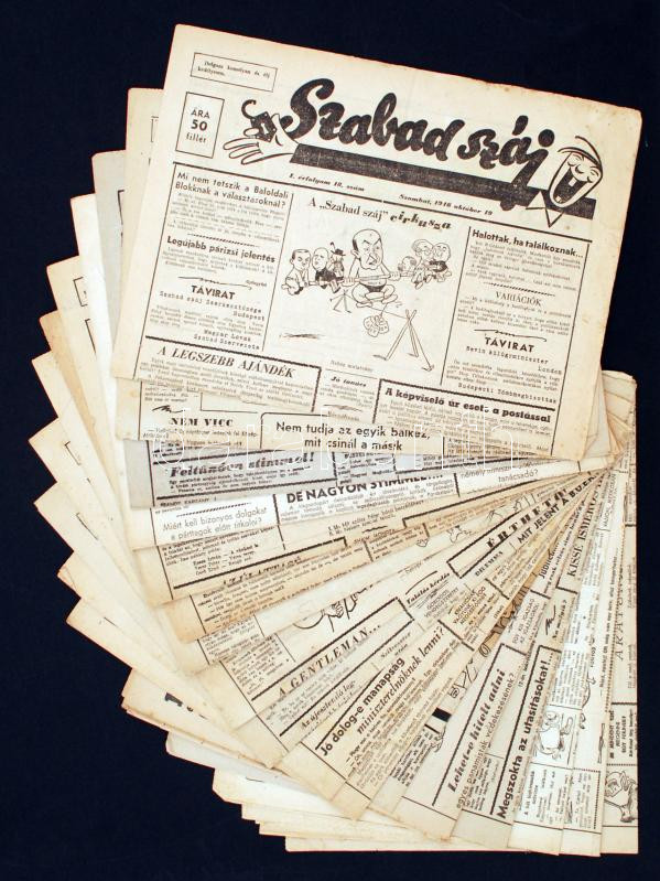 1946-1949 a Szabad száj c. politikai élclap 17 lapszáma https://www.darabanth.com/de/227-Fernauktion/227.0/Andere-Sammelgebiete/Drucksachen~200312/1946-1949-a-Szabad-szaj-c-politikai-elclap-17-lapszama~II1010996