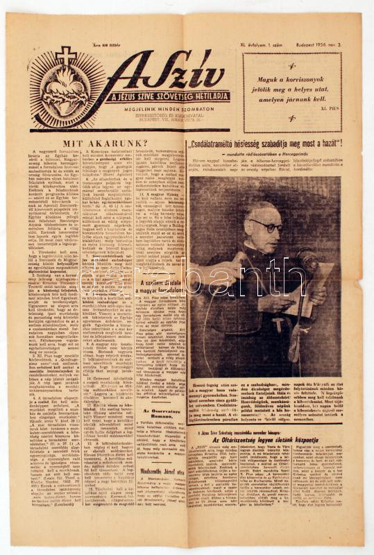 1956 A Szív c. hetilap nov. 3. száma forradalmi vonatkozású hírekkel https://www.darabanth.com/de/227-Fernauktion/227.0/Andere-Sammelgebiete/Drucksachen~200312/1956-A-Sziv-c-hetilap-nov-3-szama-forradalmi-vonatkozasu-hirekkel~II1009749