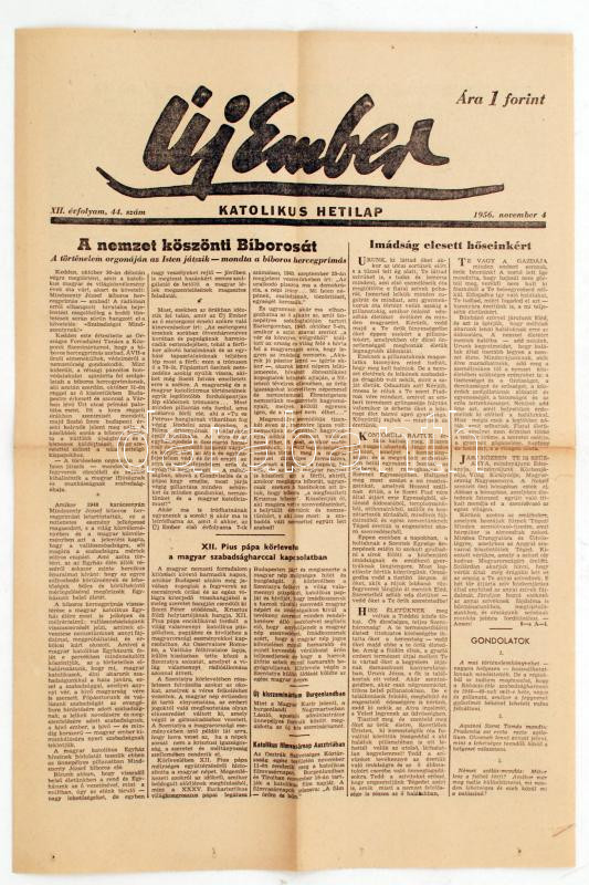 Beschreibung: 1956 Az Új ember c. hetilap nov. 4. száma forradalmi vonatkozású hírekkel