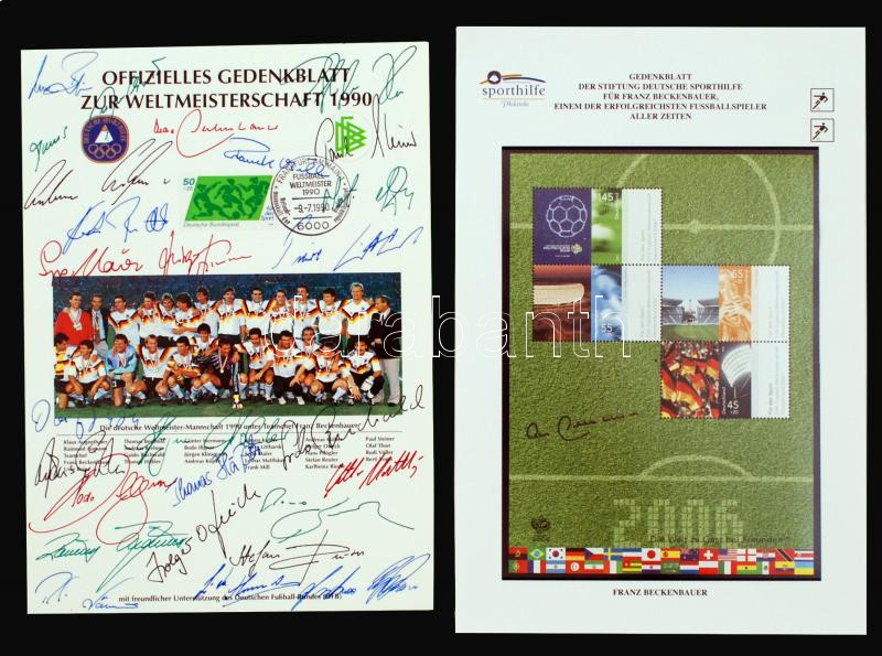 Beschreibung: 1990 A német football világbajnoki csapat emléklap + 2006 Beckenbauer emléklap / 2 commemorative sheets
