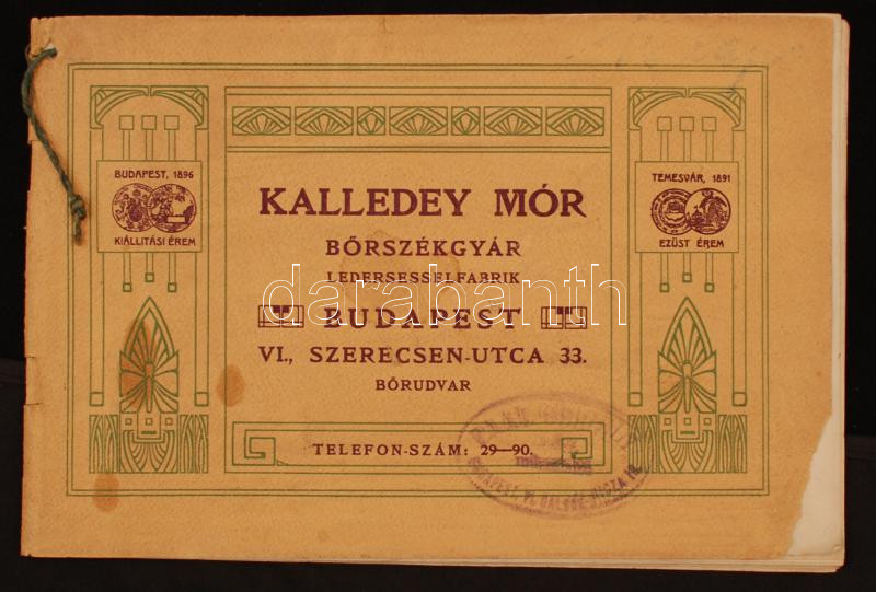 cca 1900-1910 Bp. VI., Kalledey Mór Bőrszékgyár katalógusa, 17p https://www.darabanth.com/de/227-Fernauktion/227.0/Andere-Sammelgebiete/Drucksachen~200312/cca-1900-1910-Bp-VI-Kalledey-Mor-Borszekgyar-katalogusa-17p~II1007107