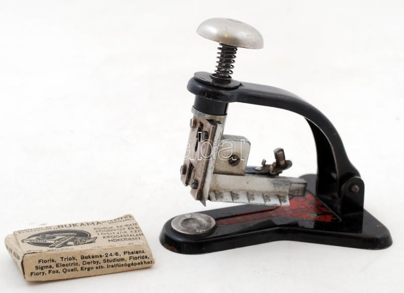 1 db régi Studium márkájú tűzőgép, hozzá való Bukama betéttel https://www.darabanth.com/de/227-Fernauktion/227.0/Andere-Sammelgebiete/Flohmarkt~200333/1-db-regi-Studium-markaju-tuzogep-hozza-valo-Bukama-betettel~II1005052