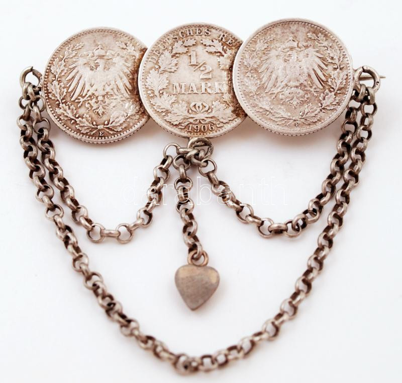 3 db 1906-os 1/2 márkás érméből összerakott bross https://www.darabanth.com/de/227-Fernauktion/227.0/Andere-Sammelgebiete/Flohmarkt~200333/3-db-1906-os-12-markas-ermebol-osszerakott-bross~II1003909