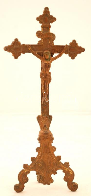 Gazdagon díszített réz asztali feszület, m: 29,5 cm https://www.darabanth.com/de/227-Fernauktion/227.0/Andere-Sammelgebiete/Flohmarkt~200333/Gazdagon-diszitett-rez-asztali-feszulet-m-29-5-cm~II1005508