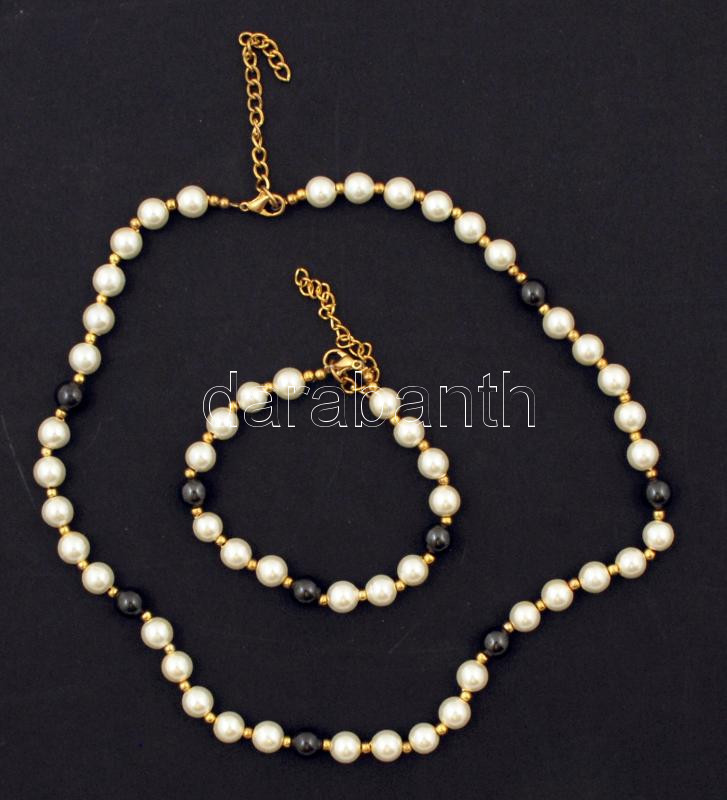 Beschreibung: Mágnessel és gyönggyel díszített karkötő és nyaklánc