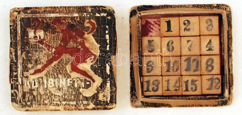 Régi, háború előtti Kombinett tizenötös kőjáték, saját, megviselt álla... https://www.darabanth.com/de/227-Fernauktion/227.0/Andere-Sammelgebiete/Flohmarkt~200333/Regi-haboru-elotti-Kombinett-tizenotos-kojatek-sajat-megviselt-allapotu-papirdoboza~II1006550