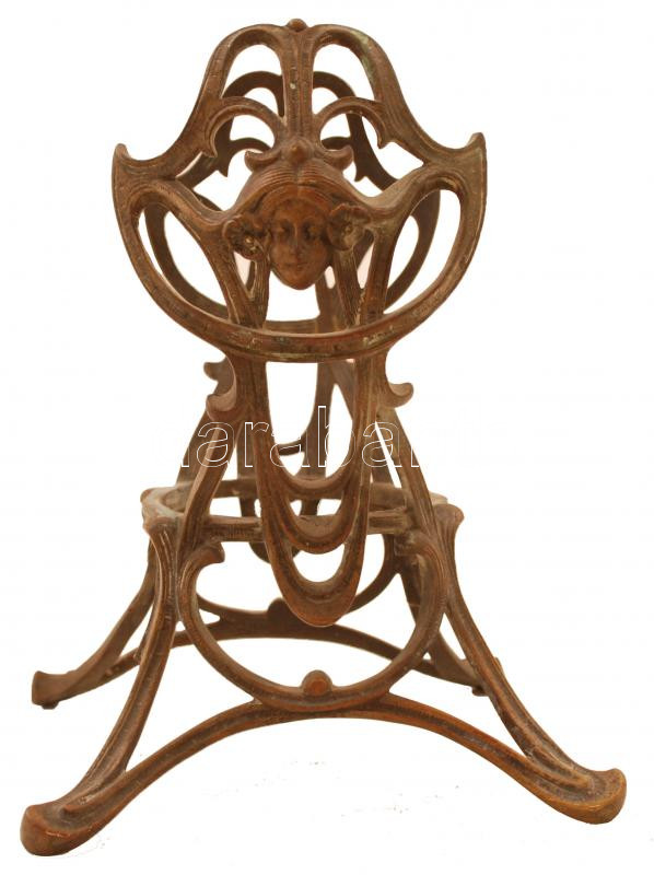 Beschreibung: Szecessziós réz teáskanna-tartó, m: 19,5 cm /