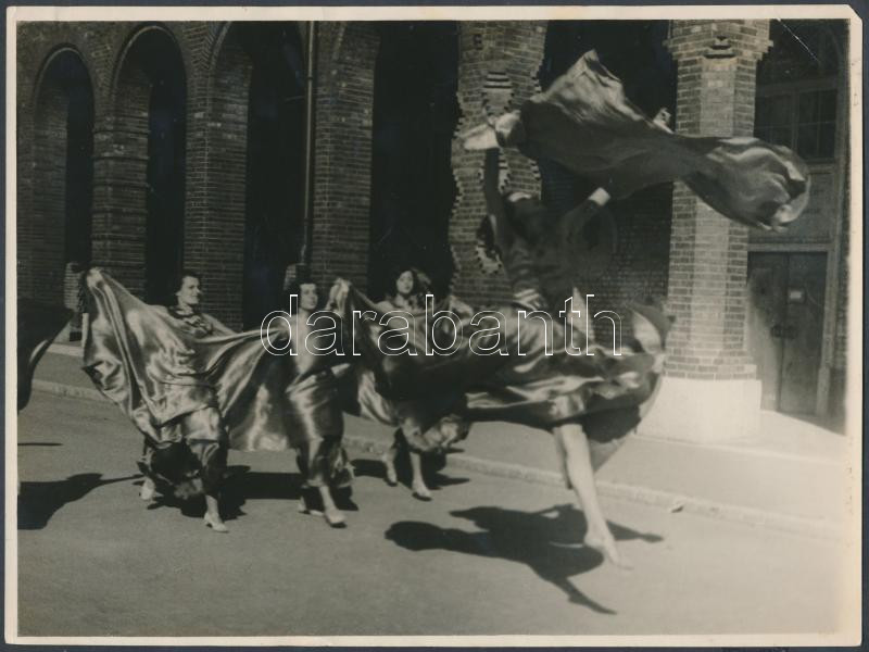 1933 Liebmann Béla (1899-1996): Szentpál Olga tánc csoportjának tagjai a szegedi Dóm téren, feliratozott vintage kép a Szentpál iskola archívumából, sarkán törésnyom,18x24 cm