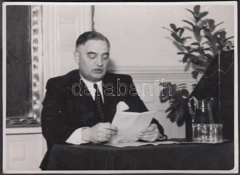 1944 Bornemisza Géza (Munkács, 1895 - 1983) iparügyi miniszter a Kállay kormányban, a kép megjelent a Pesti Hírlap Képes Vasárnapja 1944. február 29-i számában, Tiszavölgyi József felvétele, pecséttel jelzett és feliratozott kép, 9x13 cm