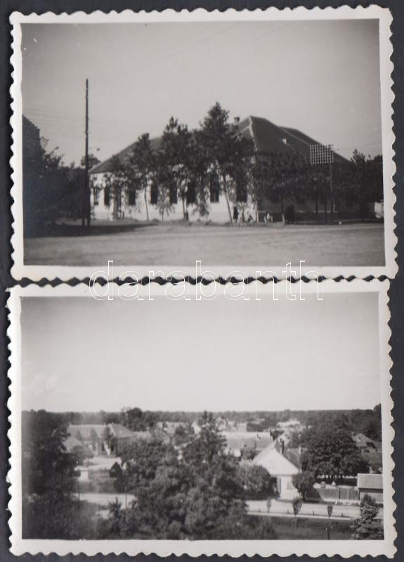 Beschreibung: Korabeli fotók, 2db, Nagybajom Községháza, ill. látképe. 6x8,5cm