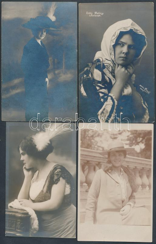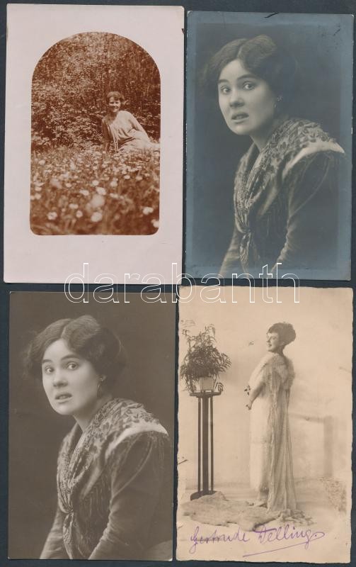 cca 1910 Eddy Delling osztrák színésznő fotói, közötte sok aláírt, néhány képeslap saját keze írásával, néhány szerepfotó / cca 1910 16 photos and postcardss of Austrian actress Eddy Delling, some with autograph signatures some with autograph writing