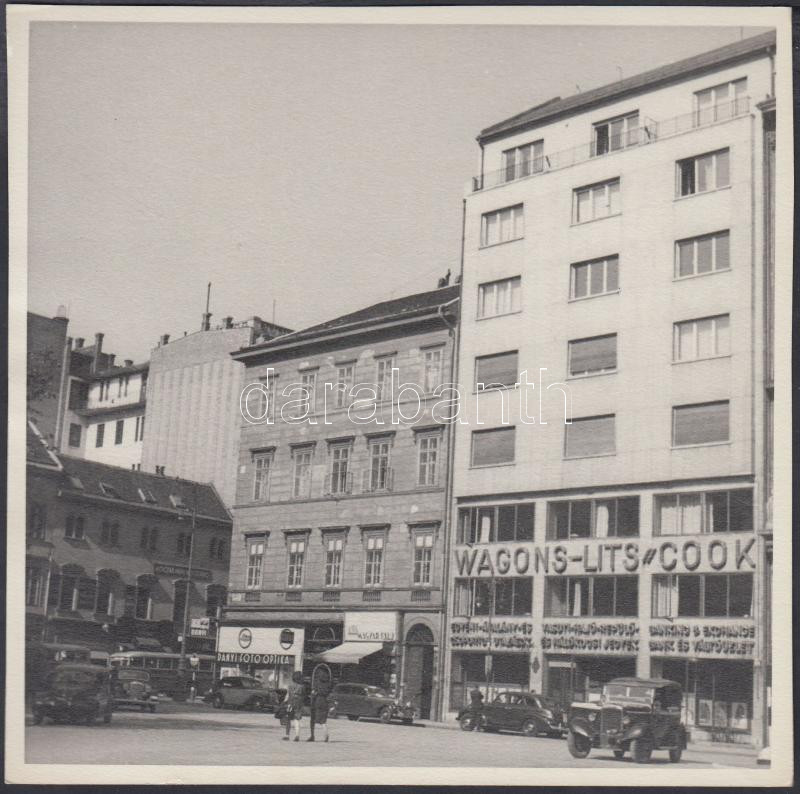 cca 1935 Budapest, Vörösmarty tér és Harmincad utca sarok, a szerző által feliratozott, jelzetlen kép Reich Péter Cornel várostörténeti hagyatékából, 18x18 cm