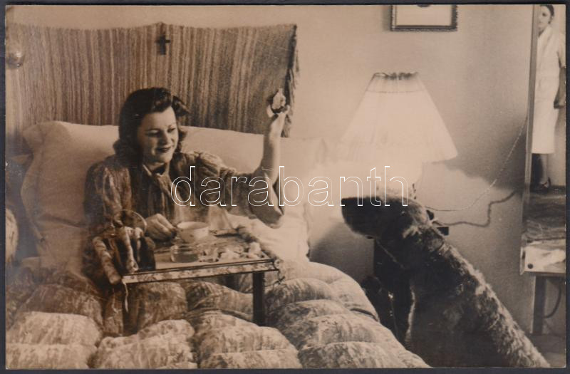cca 1940 Turay Ida (1908-1997) színésznő az ágyában reggelizik és kény... https://www.darabanth.com/de/227-Fernauktion/227.0/Andere-Sammelgebiete/Foto~200343/cca-1940-Turay-Ida-1908-1997-szineszno-az-agyaban-reggelizik-es-kenyezteti-a-kutyusat-fot~II1003500