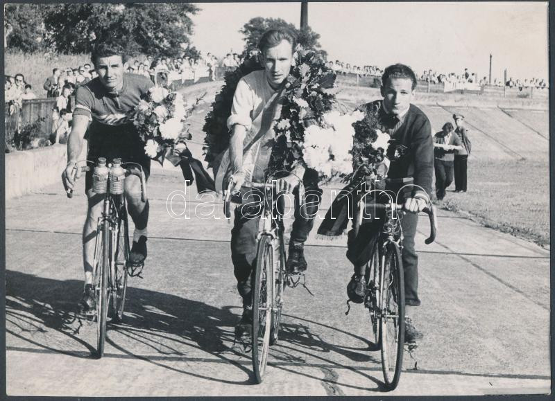 cca 1950 Az első három helyezett kerékpáros versenyző tiszteletköre a ... https://www.darabanth.com/de/227-Fernauktion/227.0/Andere-Sammelgebiete/Foto~200343/cca-1950-Az-elso-harom-helyezett-kerekparos-versenyzo-tiszteletkore-a-versenypalyan-publikC3~II1003520