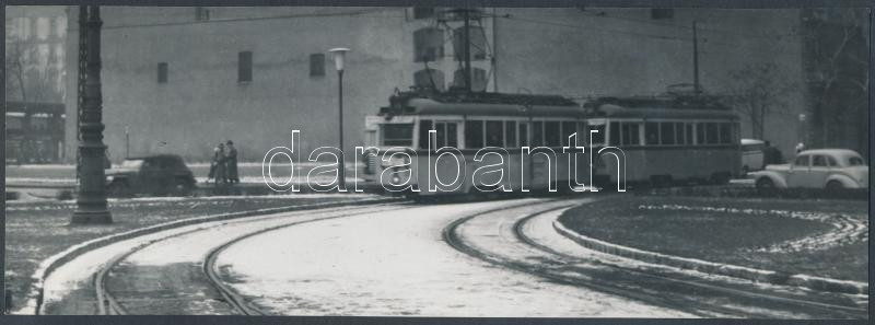 Beschreibung: cca 1950 Réti Pál (1918-1989) pecséttel jelzett, vintage fotója a 49-es villamosról, 8,5x23,5 cm