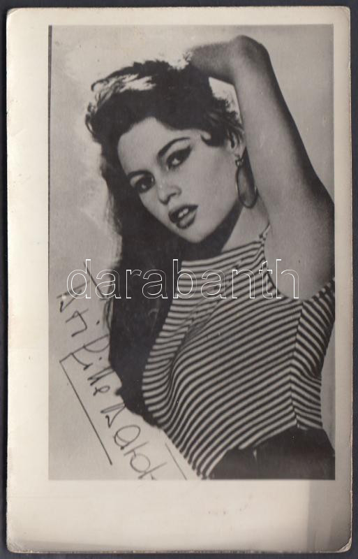 cca 1960 Korabeli fotó: Brigitte Bardot (1934-) francia színésznő, énekes, állatvédő. Az igazi, tiszta szexepilt ábrázolta egy meglehetősen prűd korszakban. Ruhái, frizurái megszabták az 1960-as évek divatirányzatát. Merész szerepei miatt sokan a bűn megtestesítőjének tekintették akkoriban. 14x9cm