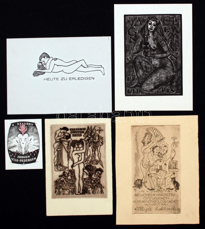 5 db erotikus ex libris, közte 3 db rézkarc / 5 Erotic ex librises https://www.darabanth.com/de/227-Fernauktion/227.0/Andere-Sammelgebiete/Gemalde-und-Grafiken~200313/5-db-erotikus-ex-libris-kozte-3-db-rezkarc-5-Erotic-ex-librises~II1012674