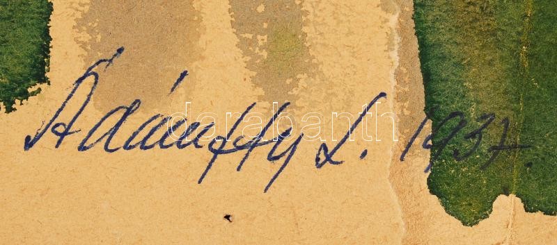 Beschreibung: Ádámffy László (1902-?): Fehér ló. Akvarell, papír, jelzett, szakadással, 35×47 cm