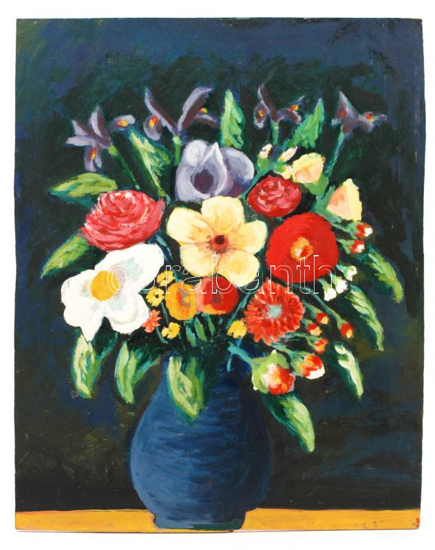 Jelzés nélkül: Virágcsendélet, olaj, farost, 46×37,5 cm https://www.darabanth.com/de/227-Fernauktion/227.0/Andere-Sammelgebiete/Gemalde-und-Grafiken~200313/Jelzes-nelkul-Viragcsendelet-olaj-farost-46C39737-5-cm~II1006625