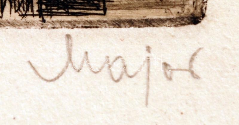 Beschreibung: Major János (1934 - 2008): Decsi népművészeti ház. Rézkarc, papír, jelzett, 19×28 cm