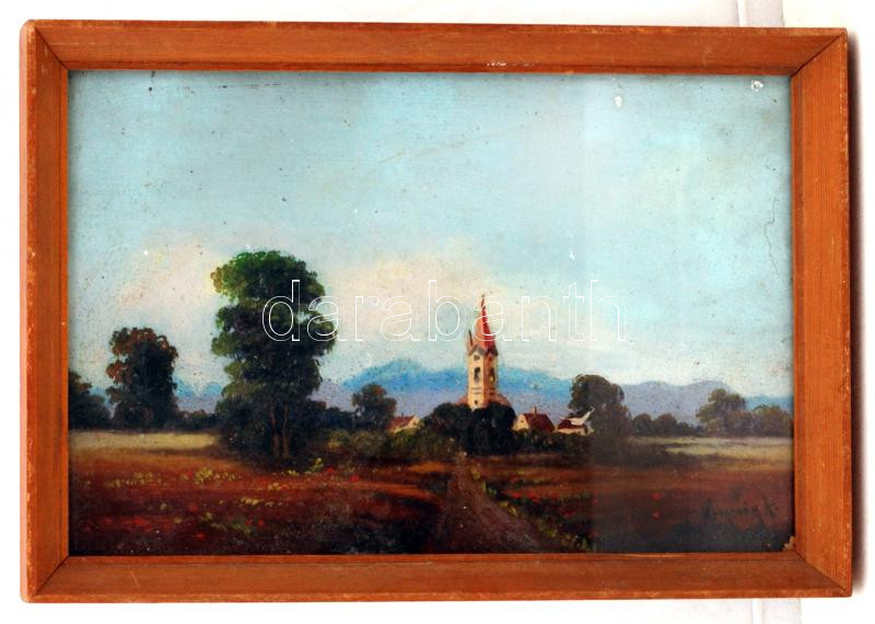 Beschreibung: Neogrády jelzéssel: Út a faluba, olaj, fa, üvegezett fa keretben, 29×19 cm