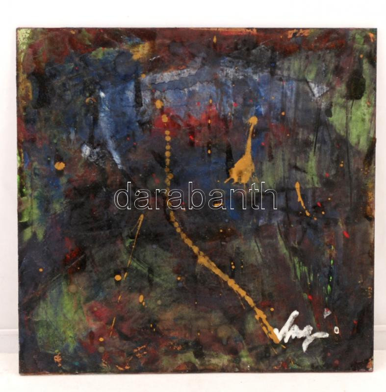 Beschreibung: Olvashatatlan jelzéssel: Nonfiguratív kép. Olaj, farost, jelzett, 26x26 cm