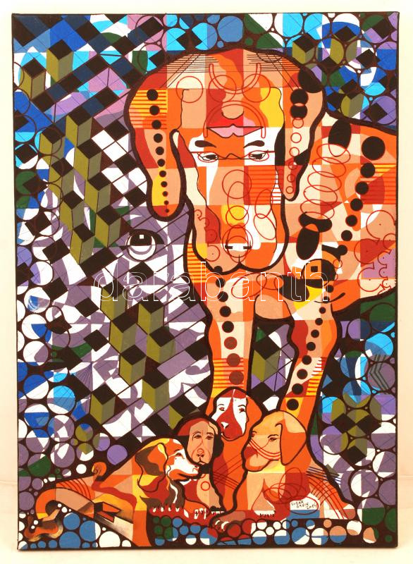 Beschreibung: Sugár Gábor (1976-): Kutya família. Akril, vászon, jelzett, 70x50 cm