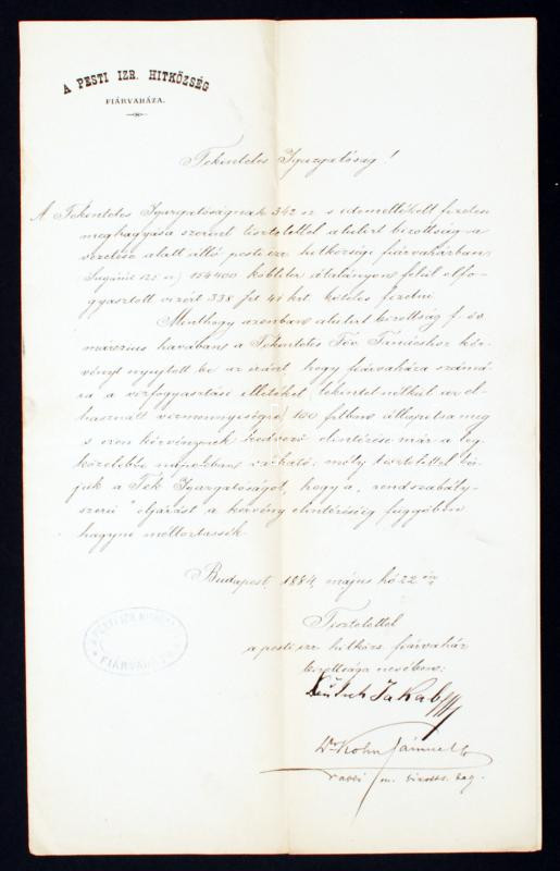 1895 Bp., A Pesti Izraelita Hitközség Fiárvaháza által írt hivatalos l... https://www.darabanth.com/de/227-Fernauktion/227.0/Andere-Sammelgebiete/Judaica~200345/1895-Bp-A-Pesti-Izraelita-Hitkozseg-Fiarvahaza-altal-irt-hivatalos-level~II1005250