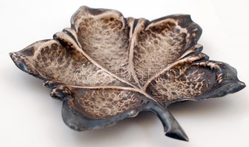Beschreibung: Ezüst (Ag.) levél alakú tálka, poncolt, jelzett, nettó: 65 g., 15×14 cm.