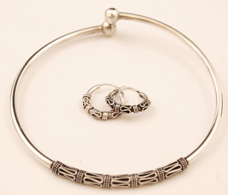Beschreibung: Ezüst(Ag) fülbevaló pár karkötővel, jelzett, 12,8 g