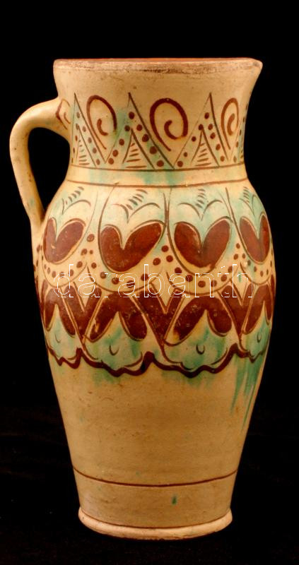 Antik kancsó, mázas festett cserép, kis lepattanással, jelzés nélkül, ... https://www.darabanth.com/de/227-Fernauktion/227.0/Andere-Sammelgebiete/Keramiken~600117/Antik-kancso-mazas-festett-cserep-kis-lepattanassal-jelzes-nelkul-m27-cm~II1004078
