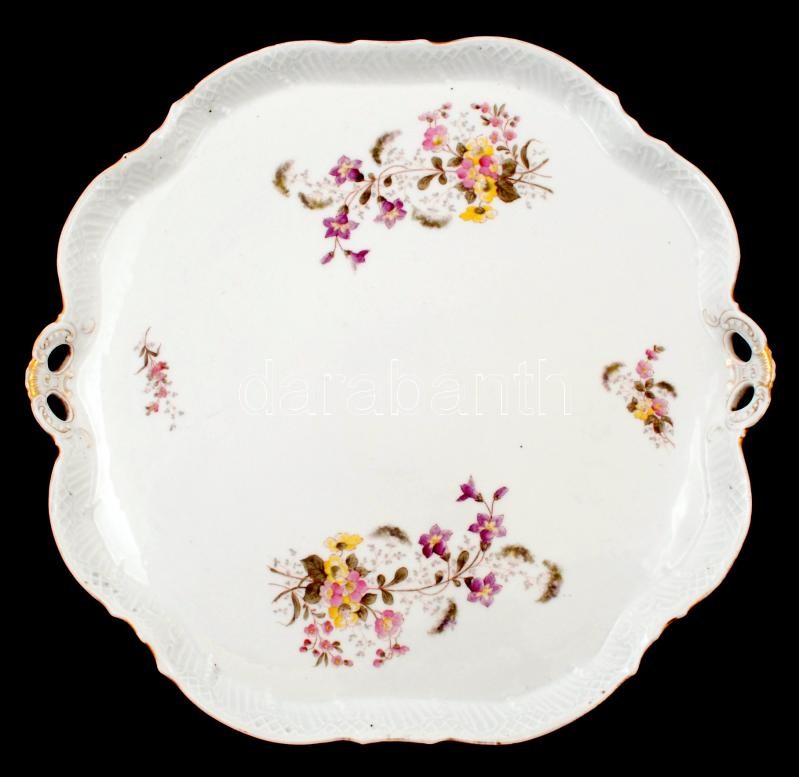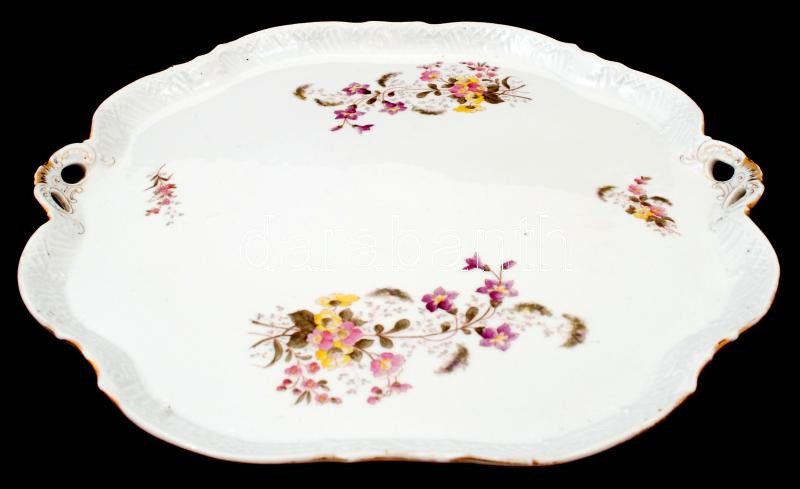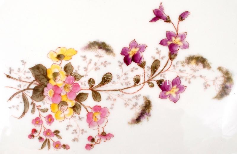 Beschreibung: Geschützt nagy méretű süteményes tál, kézzel festett, jelzett, apró hibákkal, kopásnyomokkal, 39cm